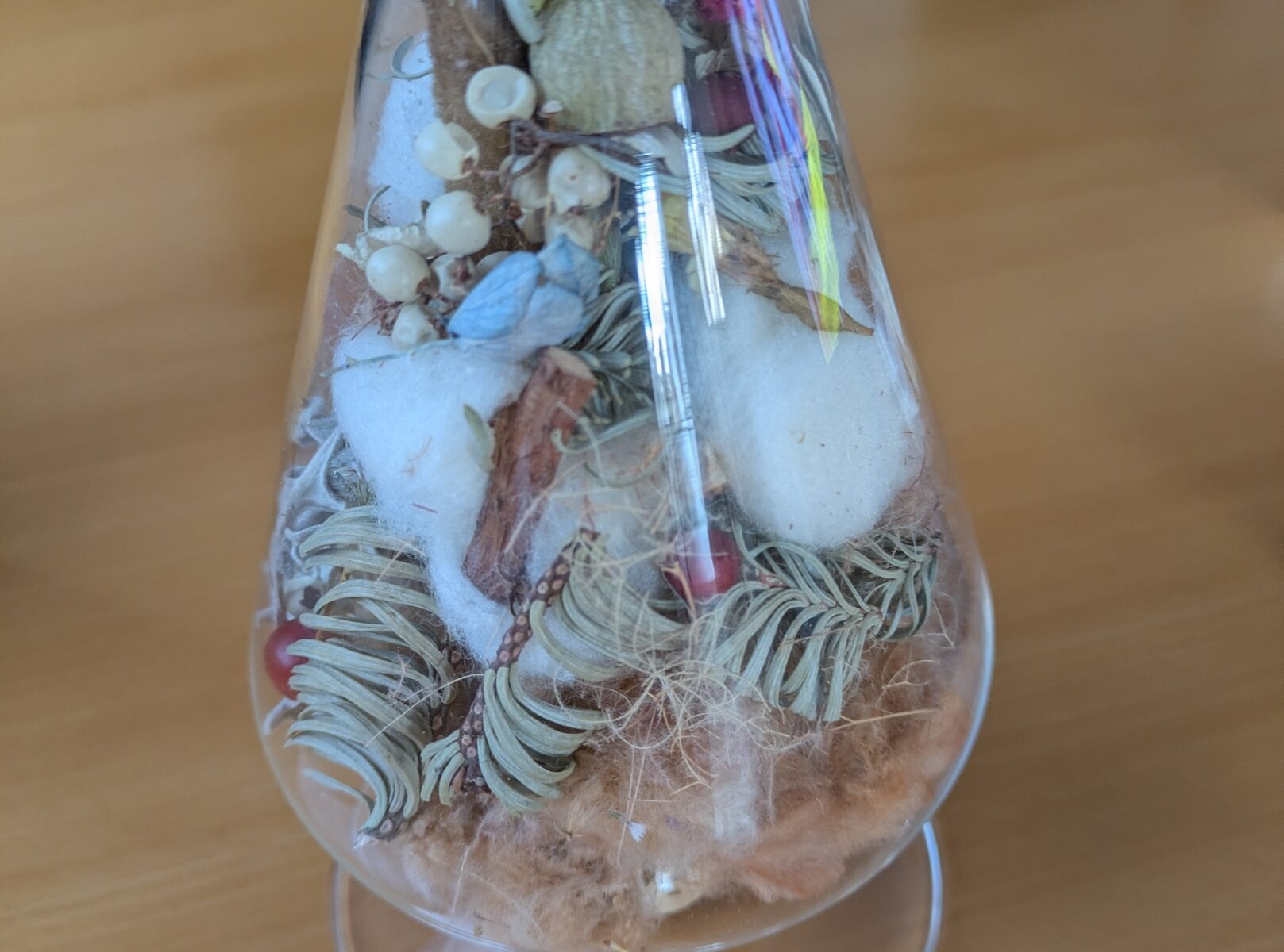 今回のテーマは「ガラス瓶で作るドライボタニカルのクリスマスツリー」。