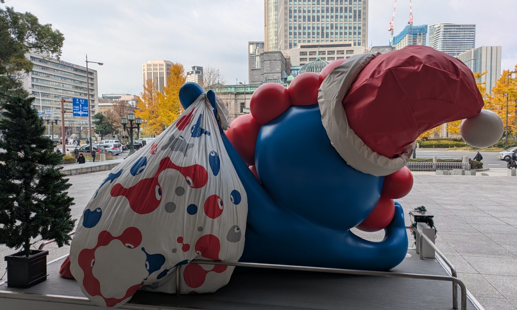 ☆大阪市役所にあるミャクミャクサンタの後ろ姿